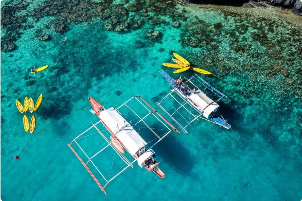 Cadlao Island hosts lunch on secluded strands like Natnat or unnamed nooks, cliffs guarding empty sands while fresh grilled fish, meats, rice, and tropical fruits fuel the day. Cadlao Lagoon shimmers turquoise on the west, begging kayak rentals to weave past jagged karsts to pocket beaches—prime corals hug the entry. The finale, Small Lagoon on Miniloc, traded from Tour A for its surge in fame: paddle a slim channel from multicolored outer pools into an emerald hideaway.